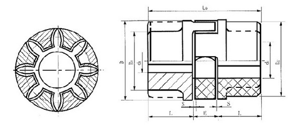 LX(XL)星形弹性联轴器以工程塑料作弹性元件,具有补偿两轴相对偏移、缓冲、减震、能,适应场合普遍,适用于联接两同轴线的传动轴系,传递转矩20- 35000.N.M,工作温度-35-+80摄氏度并与德国ROTEX联轴器互换。聚氨脂弹性体由凸形爪块限制,可避免由于冲击产生的内部变形及离心力产 生的外部变形;凸爪大的凹面,使渐开线齿上的表面压力很小,齿上即使承受过载,齿仍不会磨损或变形。
