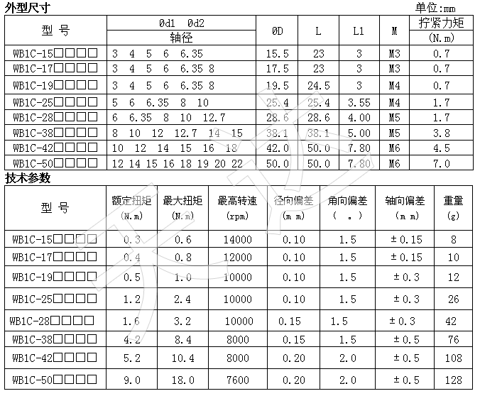 ·轴孔采用夹紧方式紧固,公制或英制尺寸孔径,零回转间隙