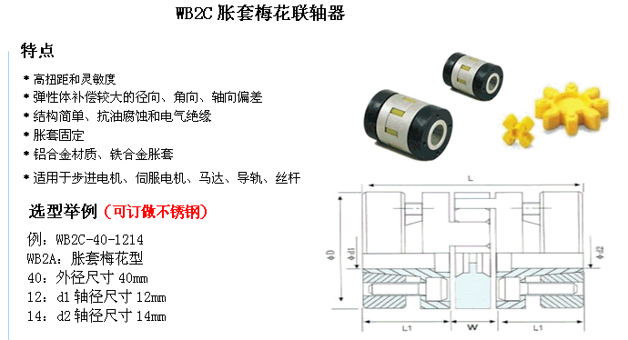 胀套梅花联轴器经过车削,铣削,和拉削等机加工方法加工而成,再经过整体热处理。以足够的机械 梅花联轴器两种类型强度,市面上还有一种爪盘是铸件,能够大批量的生产,而且免去了加工损耗。所以在价格方面比机加工要低很多.但是铸件的性能不是很好。在一些重要的场合下还是 好不要采用。并且铸件的爪齿在高速或者是高负载的情况下容易发生打牙(爪齿脱落)。
