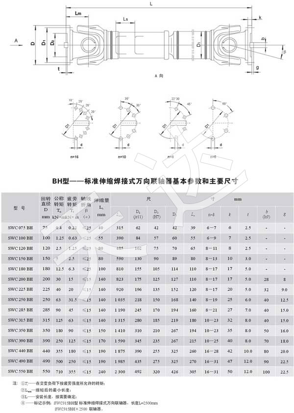 万向联轴器的共同特点是角向补偿量较大,不同结构型式万向联轴器两轴线夹角不相同,一般≤5°-45°之间。万向联轴器利用其机构的特点,使两轴不在同一轴线,存在轴线夹角的情况下能实现所联接的两轴连续回转,并地传递转矩和运动。万向联轴器 大的特点是具有较大的角向补偿能力,结构紧凑,传动。